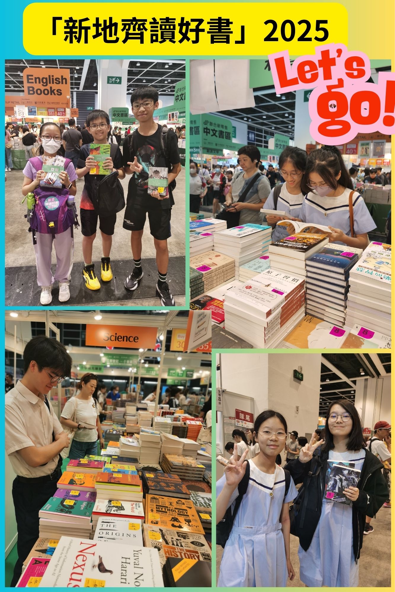 本校同學於2025年7月16日參加了由新鴻基地產新閱會及愛國教育支援中心聯合舉辦的「新地齊讀好書2025」活動,此活動不但推廣閱讀風氣,更讓同學深入探索國家航天科技的輝煌成就。而每位參加的學生均獲贈250元購書津貼,並於書展中挑選心頭好,收穫滿滿的知識與喜悅!